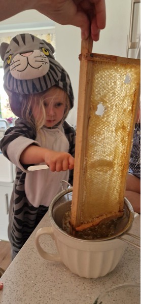 Now as this next post is going to be long here's a photo of Polly harvesting some honey from our hives.