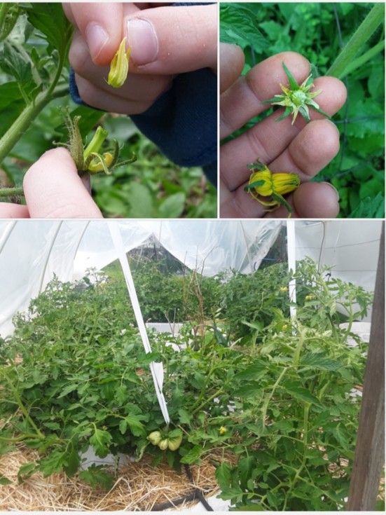 Upper: My daughter shows how to pull the anther cones (yellow) out of the tomato flower. Another tomato then donates its pollen. I'll leave it to someone else to make a proper video/picture tutorial. But thats the bare minimum of it.