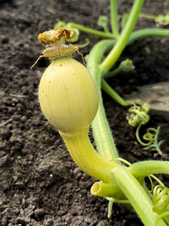 DAP #3 2006 Wolf X 2206 Rodebaugh. 18 feet out 21 secondaries behind it. Pollinated 6/15/25 8:06 AM, cloudy and 65 deg F. Only one flower from the 2206 available to pollinate. With the flower removed I finally got a good look around the base of the stigma and all looks good. Will pollinate a backup tomorrow morning, but this looks like a keeper if it takes.