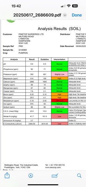 Hopefully you can read the latest soil sample. They seem to take longer and longer before we get them back which is extremely frustrating when you want to react to the plants.