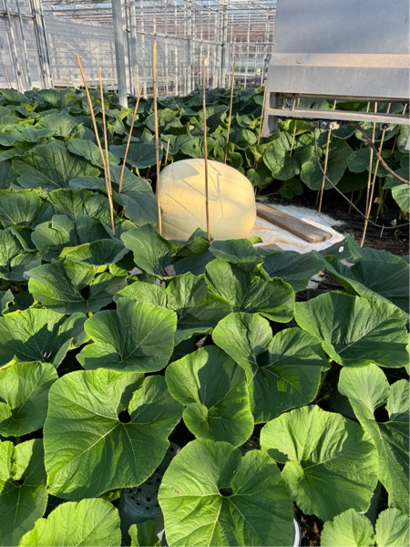 The 3 biggest game changers in our patch in the the last two years are the 5ft canes holding up the outside leaves, the perlite underneath the pumpkins and vines and the automatic watering.
