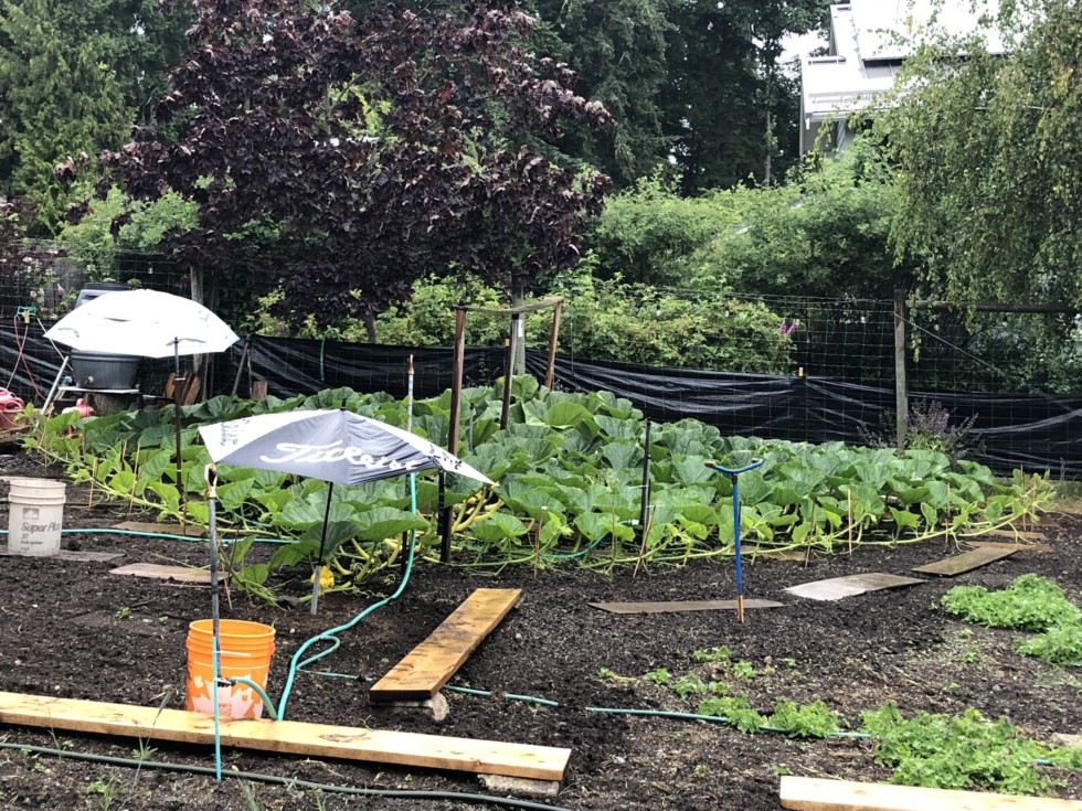 I used a rubber band to re-close the pollinated baby just after this photo. Weeding of the purple dead nettle is almost done, just in time for the chickweed to decide to germinate under the leaf canopy and take over.never ending.