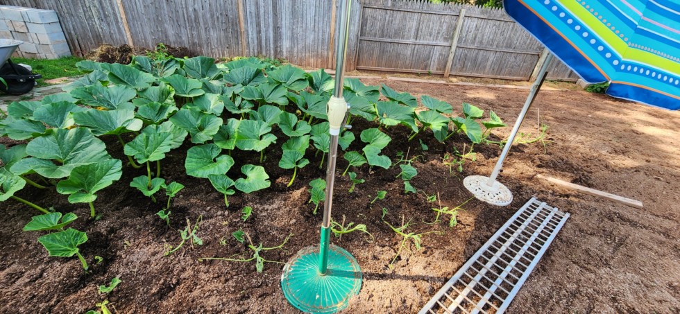 600 sq patch. Secondaries are starting to slowly take off. Haven't been really applying anything but sevin once a week for cucumber beetles mycos and azos to the nodes during vine burying. Used a light miracle grow watering early on but held off on fertilizing as of now. Hoping to set a pumpkin on each plant next week after this 5 day heat wave goes away and temps rebound to favorable pumpkin growing weather :) fingers crossed.