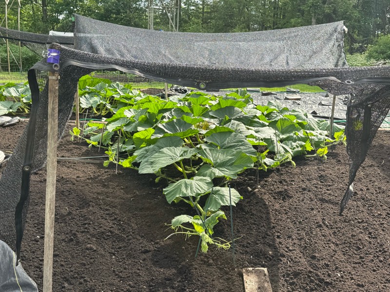 Here is the 1503 Young. We are supposed to get temps in the mid 90's with our typical 70% humidity. We decided to use what little shade cloth we had to help the growing tip and lower main vine. Plant is a little under13 feet tonight.