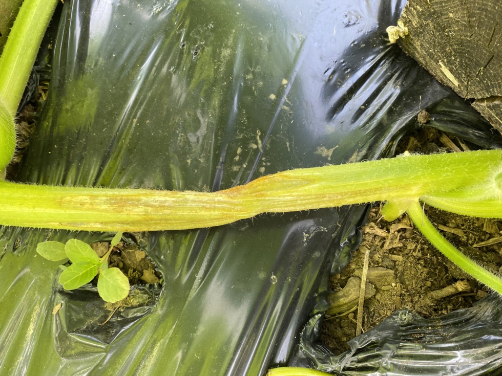 On my son, Ethan's 2147 Marshall, a few of the vines got cooked on the black plastic today and yesterday. My son Abel's 1668 ciesielski right next to the 2147 is fine.. not sure why one plant exhibits, great heat tolerance, and the other one doesnt. Could it be that this 1668 seed is now in its third generation grown on black plastic????