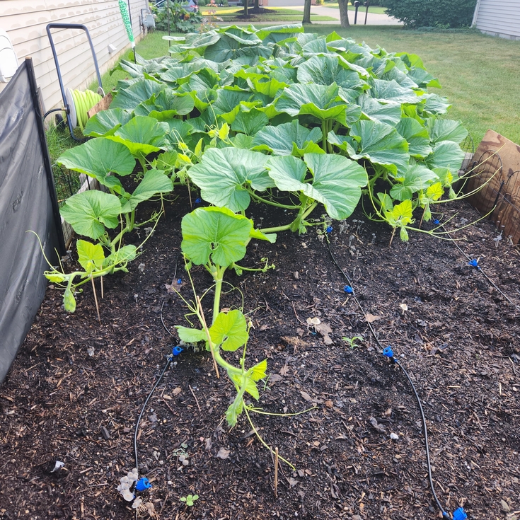 The photo is from early this morning. It's filled in approximately 11-12' of the 150sf bed with 6-7' remaining. The secondaries exploded with growth again.