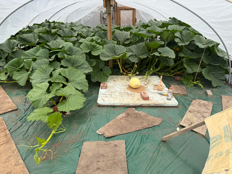 Did a bunch of pruning and arranging. This one ,as you can see, will be challenging. On the right is the secondary that's now a main being run around back. That's the main behind the fruit. On the left is a secondary running forward.