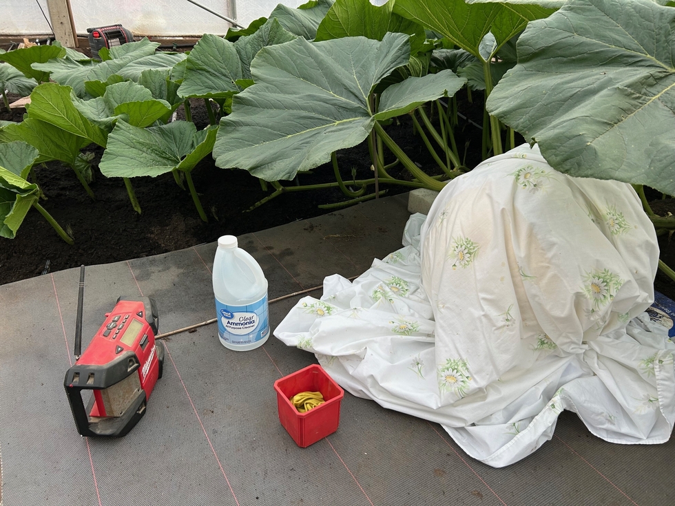 Thanks for the speedy input on my varmit! I love how bigpumpkins.com diaries have become valuable tools. I now have a couple radios playing full blast & a small container with a rags being soaked in ammonia in my greenhouse.