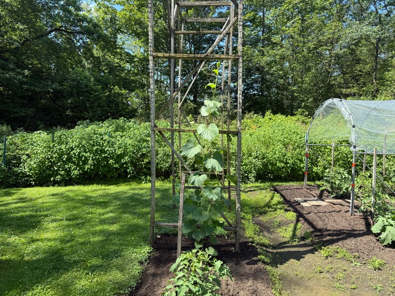The long gourds are finally growing well and about halfway up the 14.5 foot trellis. May be a later pollination but both plants appear healthy. Here is the 144 MacDonald.