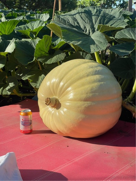 2465 Dawson x 2177 Ford. Day 22. Estimating a puny 67 pounds. My 2465 was only 66 lbs on Day 20 so there is still hope. It's also gaining about 9" a day which seems pretty good. Looks like the shape of its father and the color of its mother. I wanted the inverse.