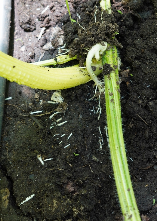 This plant has been great about getting the top root to curl over and set into the soil. Meanwhile, the bottom root has consistently exploded with growth. The combination of these two root systems has allowed for efficient water uptake and has probably helped the plant maintain its turgor pressure to prevent it from wiling.