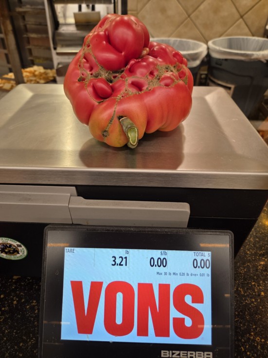 After two previous failed attempts and the last of my seeds, one of my long-time goals has been achieved. This 3.21 pound seed tomato is the result of a controlled cross between the 5.71 Lambchop (mother) and 5.95 Konieczny (father). While it's on the lighter side, I'll still register the fruit with the GPC for potential historical context. l plan to share these seeds next season with serious growers.
