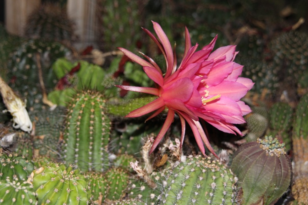 15 Years ago I bought a tiny cactus offspring on eBay (a really tiny green thing), and I just knew that it should be this particular Trichocereus hybrid "Dione". It was so long ago, for 14 years this little cactus kept on being merely a tiny spiny thing in my collection...and now the time has come...