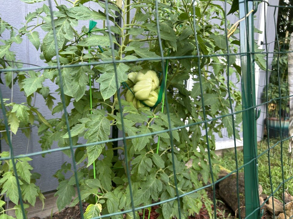 Nice tomato hanging on a 9.5 Clayton plant, hope it grow another 20days or so.