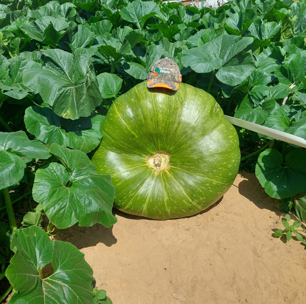 Very thin wheel on the 1123 Sproule 'A' 274 pounds at day 25, exceptionally good growth (My theory is later polinations have faster early growth potential than really early pollinations, now I just have to figure out exactly what is too early...) The strap is holding it from falling onto its stem.