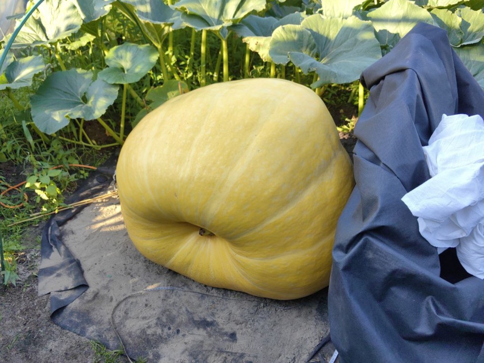 I have a few more pumpkins growing from my own seeds. Today, this pumpkin weighs 462 pounds. The plant takes up about 130 square pounds or less.