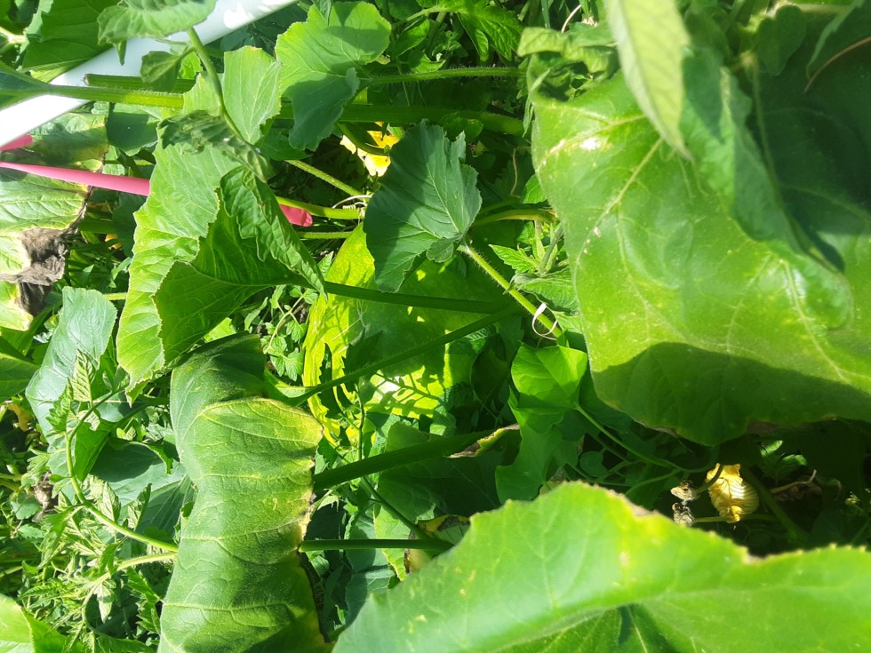 Dang it. Many days of looking around this plant for rogue squashes and yet I can't notice this one until it weighs 100 lbs?! Day 30 numbers for squash coming up. Maybe 100 lbs smaller than it could have been.