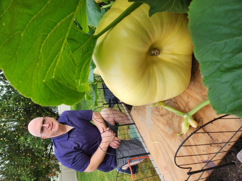 We've had two pumpkins on the vine for three weeks in the 150sf patch. It's a Vanhoutte seed at DAP 19. The fruit on the main vine is gaining weight at a rate of 15 pounds per day this week. We have a second pumpkin growing on a secondary vine that is several days younger. The bigger pumpkin tapes at 154 pounds this morning but isn't looking great, even though it continues to gain weight consistently. It's had some dimpling from the start, but as of July 4th weekend it was the first and only pumpkin that lasted more than 5 days after pollination.