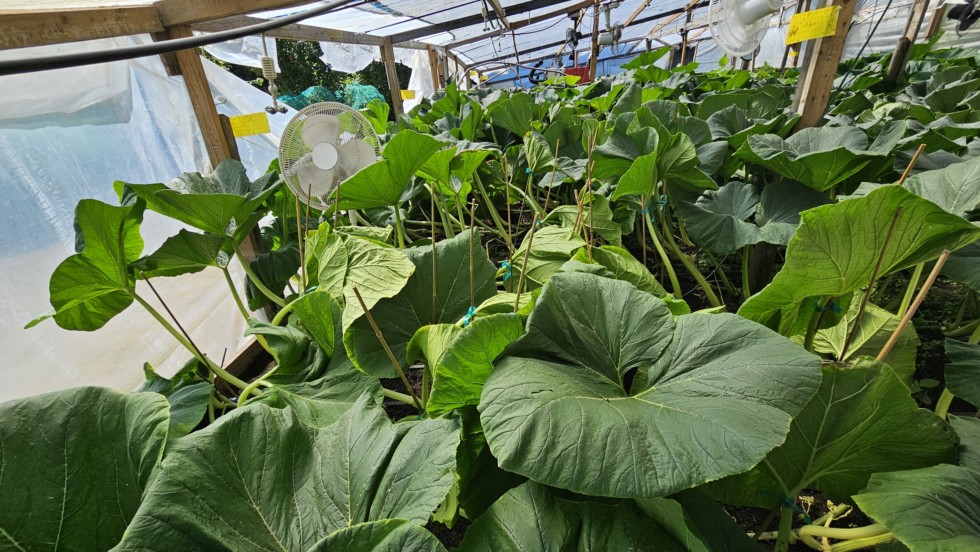 You gotta do what you have to do !! Leaves were falling over in large swaths on the #2 Barron 2144. If you look closely you can see many 4 ft bamboo stakes. One day when I'm really bored I'll count how many stakes I've placed but it gets into the hundreds. I also used green plastic gardening ties to secure the stalks to the stakes.