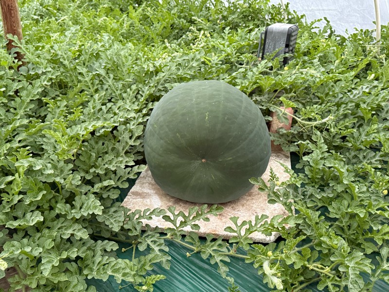 The late pollination on the 162 Crews Jumbo Black Diamond is filling out well. The plant is benefiting from being the lone patch on that side this year. Extra water.