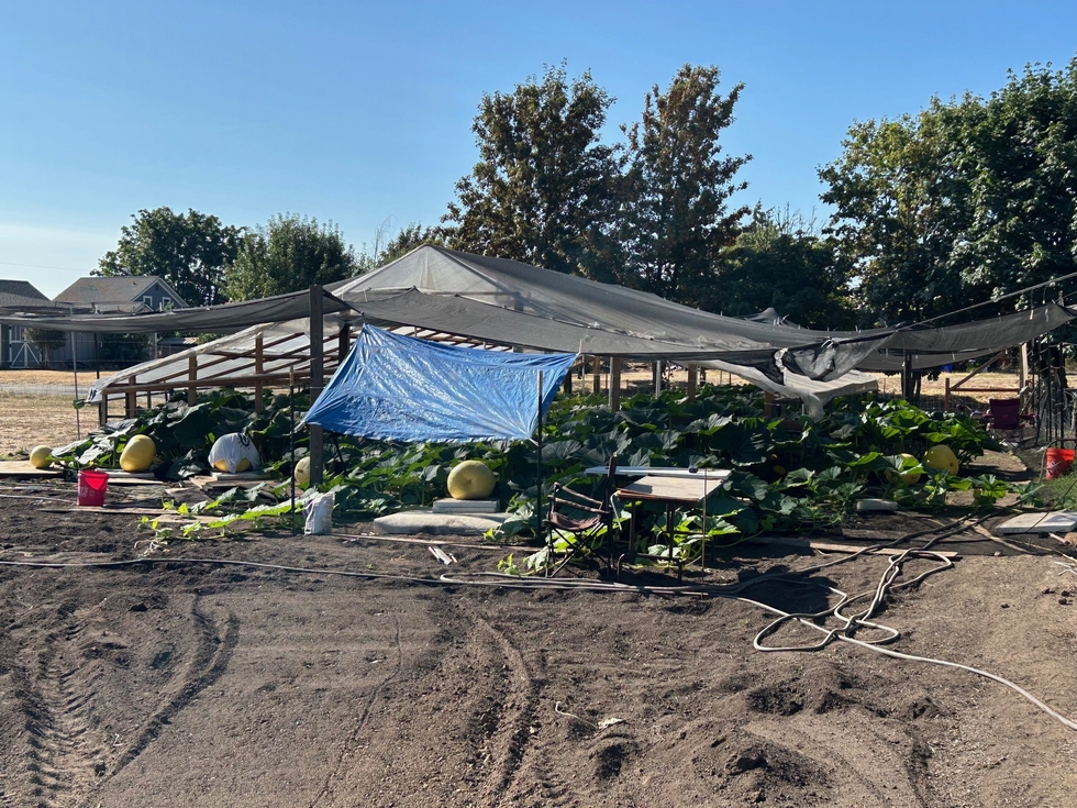 My next door patch features 8 fruit set between August 9 and 13 on my 2069 Stelts plant. I've got a feeling that they will start blossom end splitting any day now.