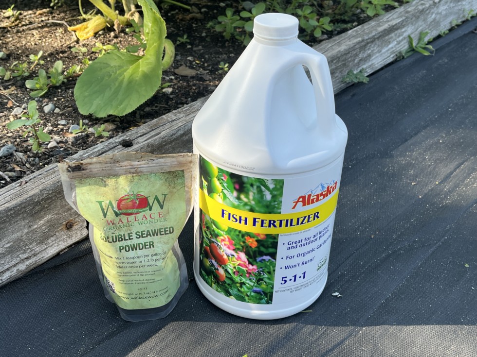 Fish and seaweed tonight. Alaska is a very dense product with an NPK of 5-1-1, so I balance it out with 1-0-17 WOW Seaweed.