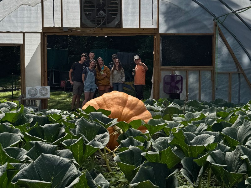 Gene and I had visitors at the greenhouse on Saturday. My oldest son, his girlfriend and family came to see the pumpkins. Most of them had never seen a giant pumpkin still growing. Gene and I were answering questions all morning! It was a fun time.