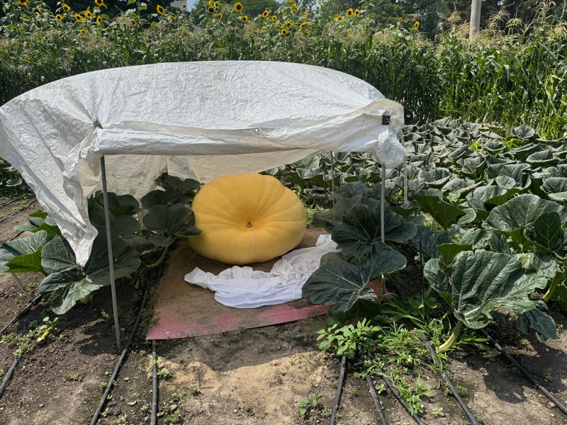 Well I finally got one going in the 2731 Stelts. Something chewed the main just before pollination then that caused me to pollinate during the heat wave. Bunch of weird shapes and aborts till 5 or 6 later on a late side vine this one came along. It was definitely after July 4 th but I stopped keeping track after they all were going south so I'm guessing this was about July 7 th pollination Xs Self. I'll do an OTT on the 7 th of august for a day 30 number