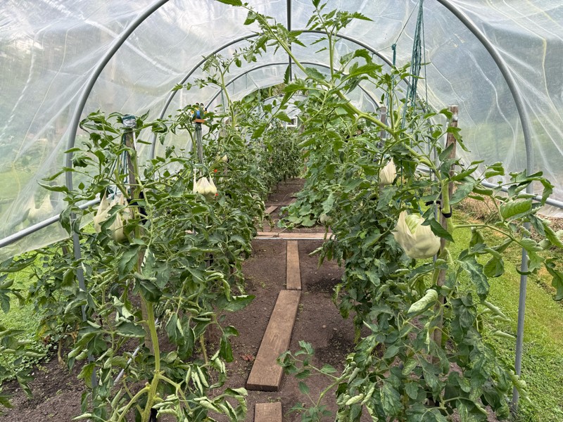 Tomato cave north is also humming along with the leader being the 9.5 Clayton at 24 1/8 inch circumference.
