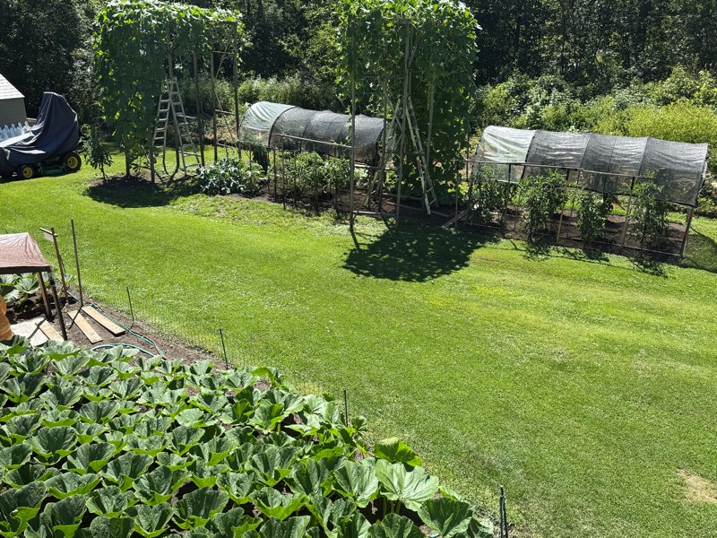 The long gourds and tomatoes keep plugging along but with nights getting cooler they all will slow in growth.