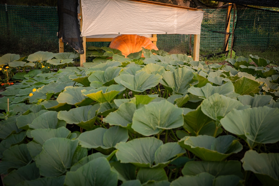 DAP 40 OTT 303 est weight 653lbs. Growing steady but slowing down a little. So far this August has been pretty low maintenance with no storms, very low disease pressure, and a smaller but healthy plant. My biggest problem has been moles. I have tried underground vibration, harpoon traps, and poison worms to no avail. Other than that it is probably the healthiest plant I have had mid-August. Unfortunately it hasn't translated to the biggest pumpkin yet but a PB is still possible by the end of the season.