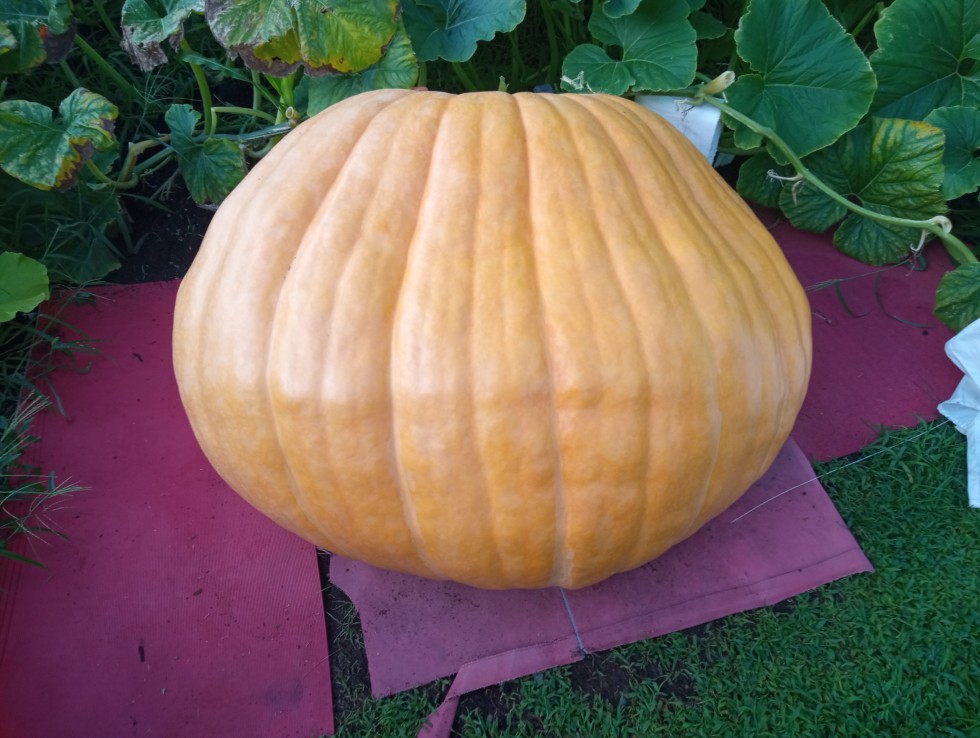 DAP 47...152cc..90ss..86ss for328OTT..825 lbs. This 990 Swigert is doing well for my friends in their 400 sq ft patch. Very wide at 5 1/2 '. Things are slowing down here and leaves are getting used up. 40s and 50s for night time temps will slow it down more. Over a month to go for Saratoga Weighoff. Hope she holds together for them! They are hoping for a 1000 lber.