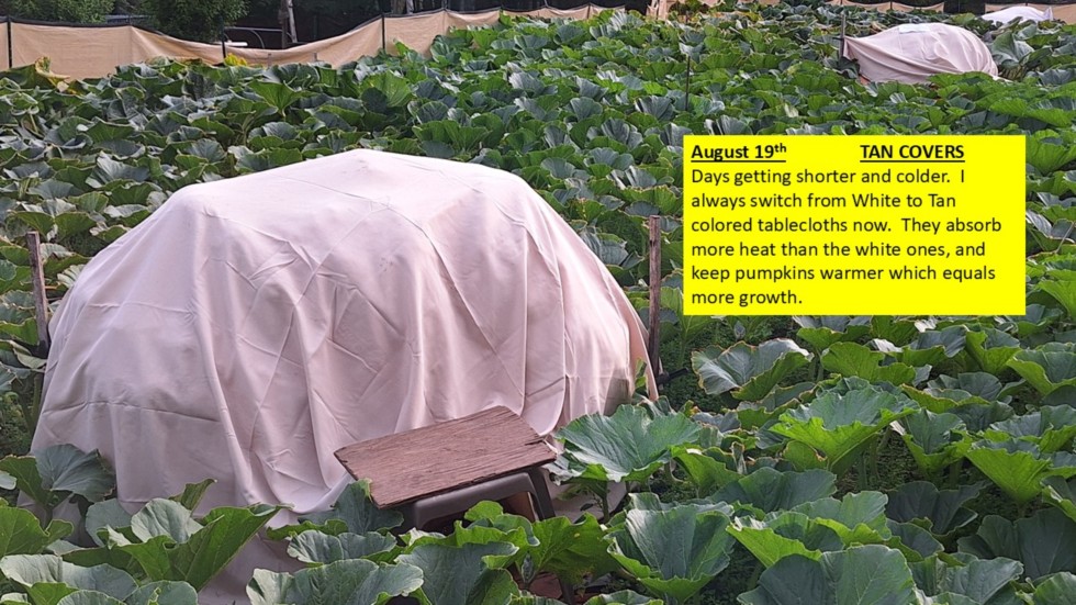 I switch from White to Tan tAblecloth covers (now that its getting cooler) to absorb more heat and promote more pumpkin growth.