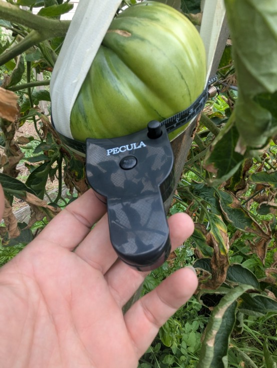 I tried this today and I think I might be on to something. It's a body measuring tape measure. It makes it super easy to get around tomato and tighten it up.