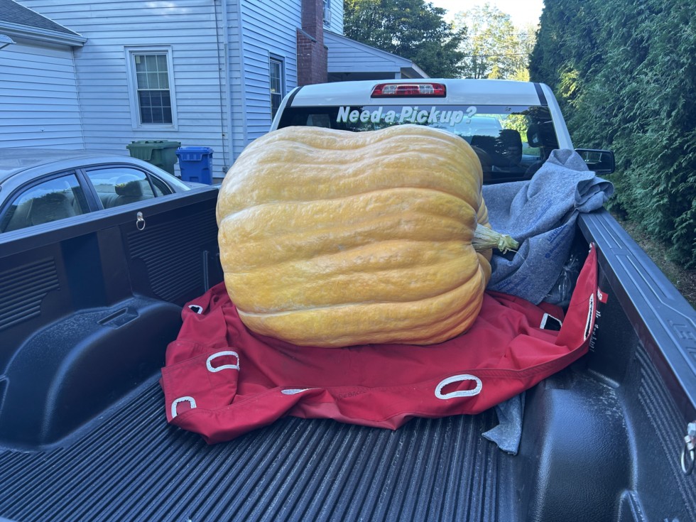 Ok, I got a pumpkin on a palette on a truck. Should I have the pumpkin in the front or back of the bed?