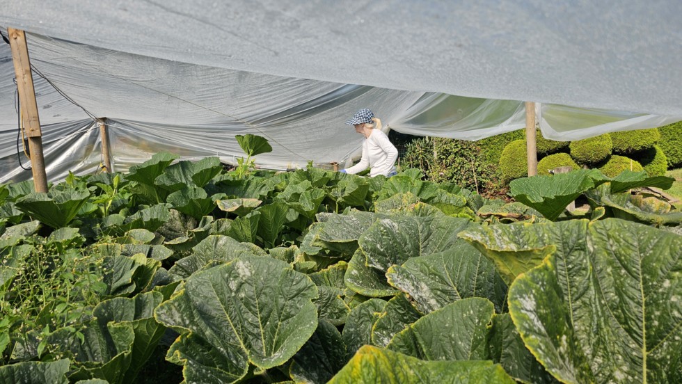 Janet is trying to keep the tertiaries of the 2144 Barron #3 under control. She removed 50 females on this session ! As you can see the PM has a good foothold but this section is worse than the rest of the plant. I've been happy with my control of PM using only Hygopunch oil as my fungicide.