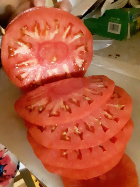It was about 900 grams so a bit under 2 lbs... not quite living up to its momma. But sliced real nice, without much hard pithy bits.
