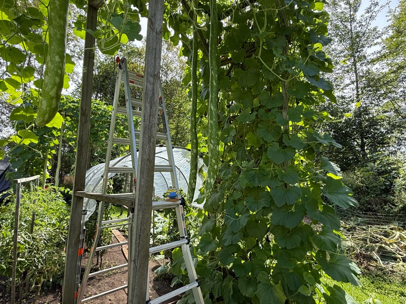 It has been a tough year for long gourds with one trellis "sour tipping" which disqualifies us and the other trellis not growing long. But the 135 Jutras ones look great with solid tips and over 100 inches.