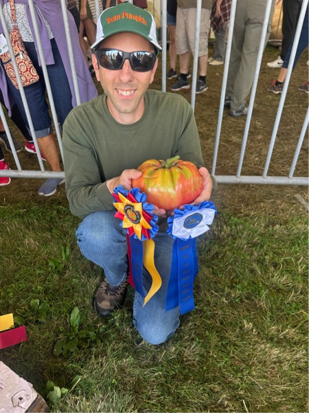 Here is Matt D. showing off my tomato at the Woodstock Fair! I have a couple more coming to the scale soon.
