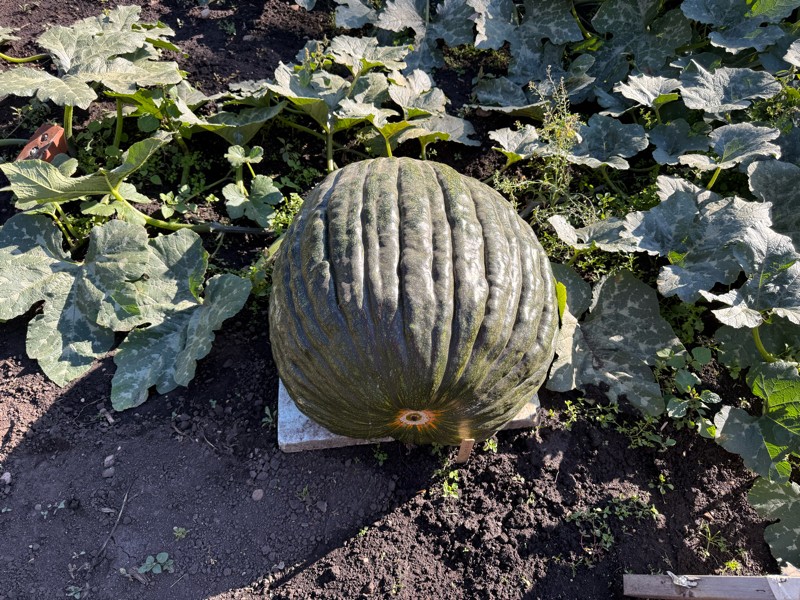 The 214 Young field pumpkin pollinated July 20 ish in the sweet spot. Taking advantage of cooler weather and putting on weight. One week different pollination date and it may grow for three more weeks. Without a frost of course. Which is tonight.
