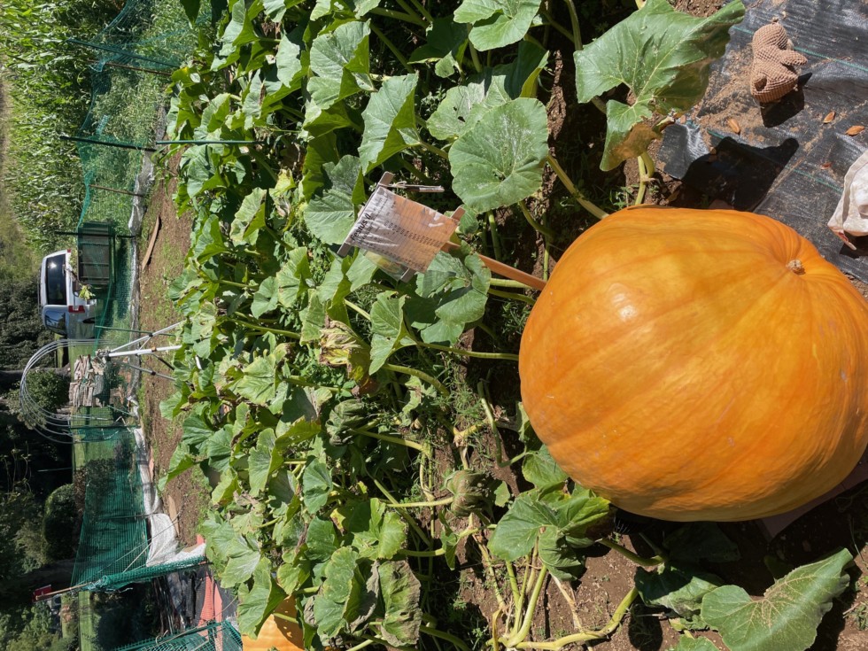 The 2084 kin has stopped growing at 420lbs - why? Maybe the sun making it orange without shade cover - heard that could happen. Stem lost 50% of its width with the split but what's left seems good enough for a slow steady weight gain. It's otherwise solid. Considering cutting it from the vine today - maybe if left on the vine also susceptible to rot. The other on the vine is 280 lbs but also slow to gain. The 2070 and all the kins on it rotted and so ripped it out today. Is this all worth it?