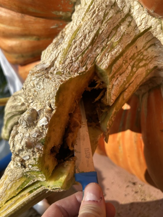 First I removed the plant past the pumpkin and realized the extent of the rot.