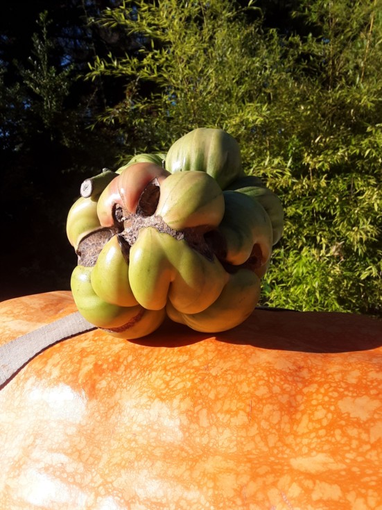 Tomato on a pumpkin. 8 lber. Off a 6.02 La Rue plant.
