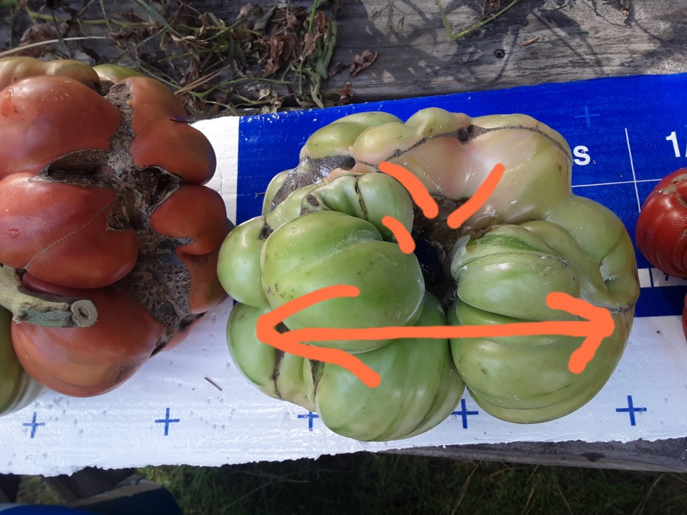 Underside. It rotted a bit, possibly because the way it was growing it kept cracking the tomato apart or maybe because it got damp at some point. If they get damp then they will almost certainly rot... although it may take 2 weeks or in this case 3 weeks for the rot to finally show up.