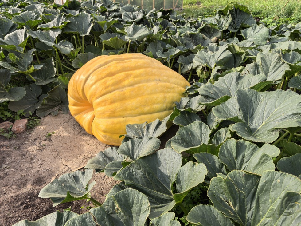 2344.5 Wallace didn't grow very fast, but she continuously gained in the range of 11 to 35 pounds per day, despite all the vagaries of the weather. The last 10 days of July turned out to be very cold. It even froze in some places at night. Fortunately, the pumpkin was not affected. The first half of August was very rainy and cloudy.
