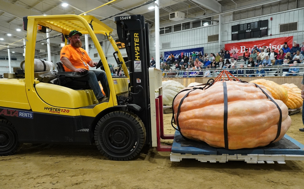 Here you can notice the pallet extension that was needed to accommodate the extra length this pumpkin has. In general, what it lacks in height it has in both length and width.