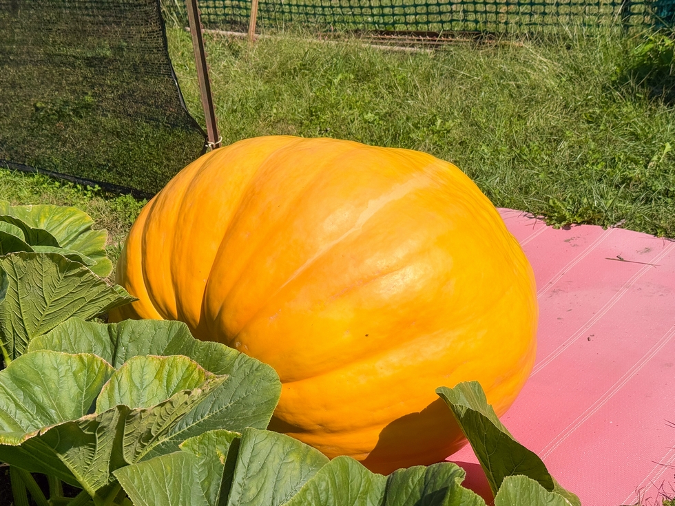 I have let a couple pumpkins grow on the side vines at the end of the season, this one measures about 400 lbs around DAP 40, but unfortunately had a BES a couple days ago.