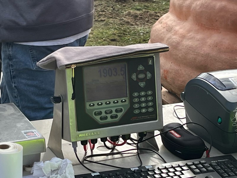 When Gene's pumpkin came to rest on the scale, I was in total shock! His pumpkin weighed 1903.5 pounds! EXACTLY the same weight as mine at Durham. This is a message. I just wish I knew what that message is?