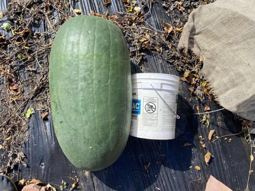 This melon was on the same plant as the other black Tom Watson, hybrid melon in the previous picture about the same size too. I never got a weight on this one, but I will take the seeds out.