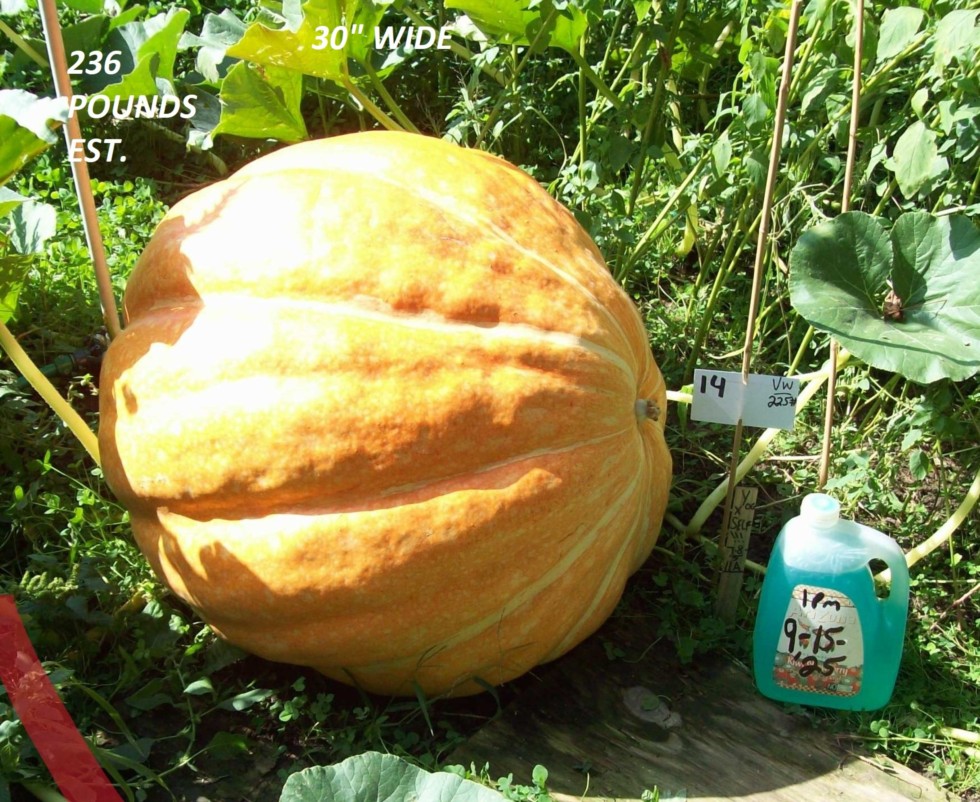 My beloved #14 fruit '25; We can really see the Prizewinner genetics coming through, I suppose, as this is offa my Seed Y seed, lol, that is (2003 Haist X 20 Gerry '10 (PW X 689.5 Sandercock)), AKA 51 Gerry '20; Year before last, this seed grew my biggest fruit for '23 @ 442 pounds. Seems I'm getting an 'every other year' thing going on. Oh, no! Some smart day, I'll wise up and grow an entire annual CROP of the$e bad girl$$$!!! eg ***The final weight was 213.8 (213) pounds.